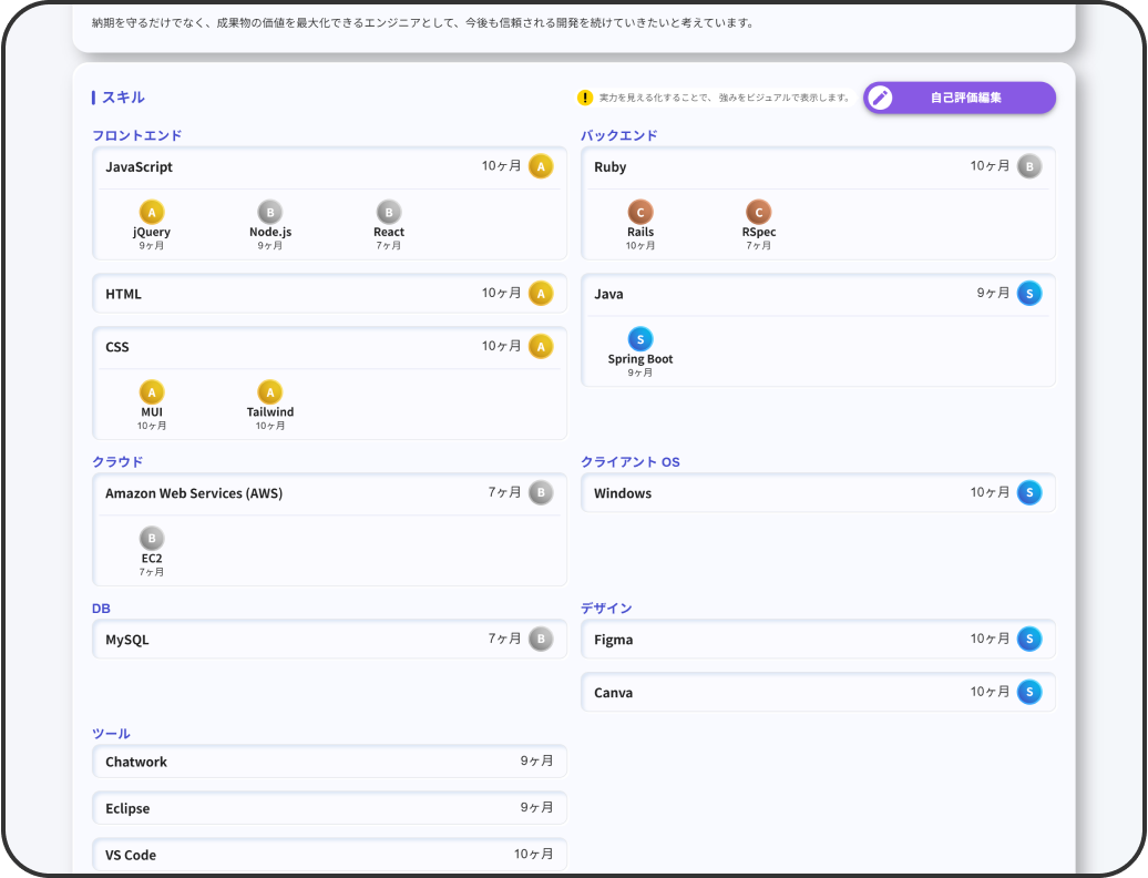 実務目線のスキルシート。